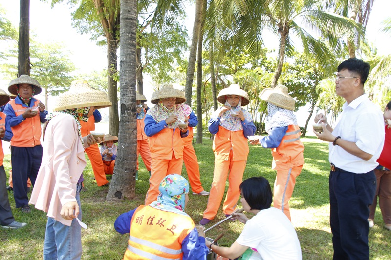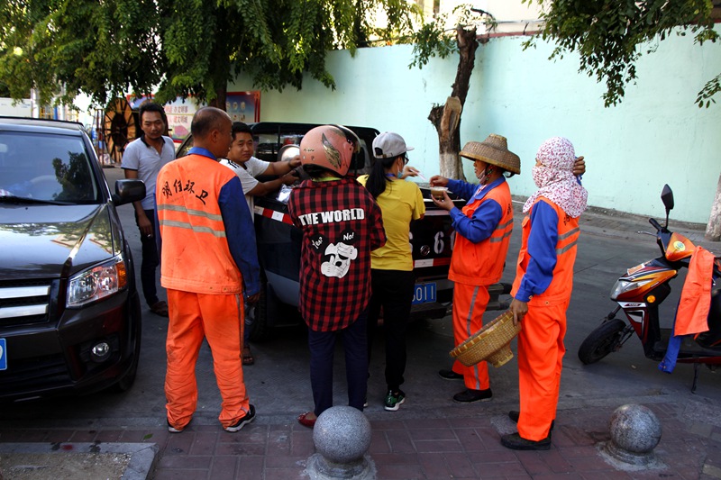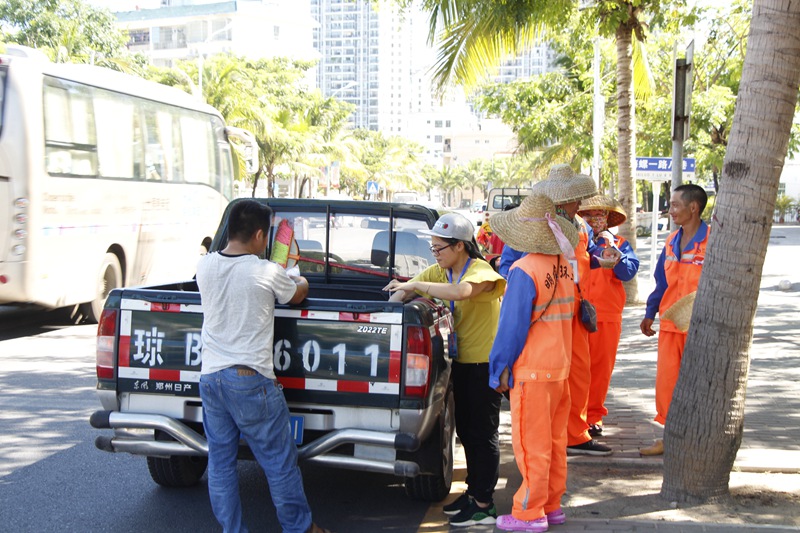 在鳳凰路一中路段、海虹廣場(chǎng)等地,正在清掃保潔作業(yè)的員工們頂著(zhù)烈日,堅守一線(xiàn),為城市的干凈整潔不停歇地忙碌著(zhù)。工會(huì )主席高斐斐表示,在這么炎熱的天氣下,員工們依舊堅守在城市的大街小巷揮灑著(zhù)汗水,十分辛苦。她叮囑員工們在保證工作質(zhì)量的同時(shí),要科學(xué)調整作息時(shí)間,合理安排勞動(dòng)生產(chǎn),確保在高溫天氣下作業(yè)安全。勉勵大家繼續發(fā)揚明佳精神,為創(chuàng )造更加整潔、舒適、優(yōu)美的城市人居環(huán)境和“創(chuàng )文鞏衛”工作作出更大貢獻。
