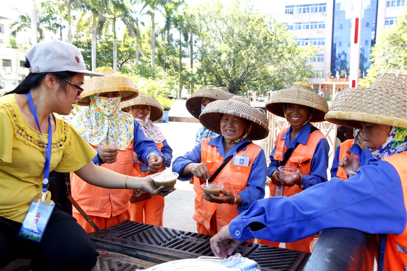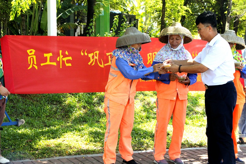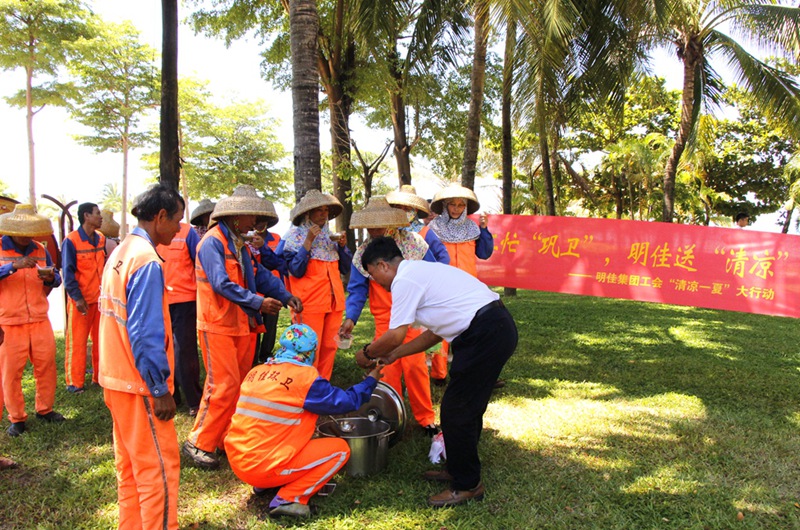 7月3日,集團公司主席工會(huì )主席高斐斐率慰問(wèn)組一行,到鳳凰路一中路段、海虹廣場(chǎng)等地為正在高溫下作業(yè)的員工送去降溫解暑的綠豆湯,送上公司以及工會(huì )組織的關(guān)懷和問(wèn)候。