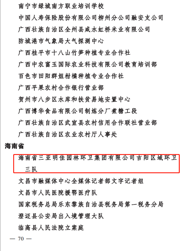 “芬芳三月,如歌巾幗?!痹趹c祝第111個(gè)三八國際勞動(dòng)婦女節之際,三亞明佳園林環(huán)衛集團有限公司吉陽(yáng)區域環(huán)衛三隊榮獲2020年度“全國巾幗文明崗”榮譽(yù)稱(chēng)號?!叭珖韼轿拿鲘彙笔侨珖鴭D女“巾幗建功”活動(dòng)專(zhuān)設崗, 是全國婦聯(lián)為表彰積極為國家、為社會(huì )、為人民做出突出貢獻,取得優(yōu)異的優(yōu)秀婦女團體而頒發(fā)的榮譽(yù)稱(chēng)號。